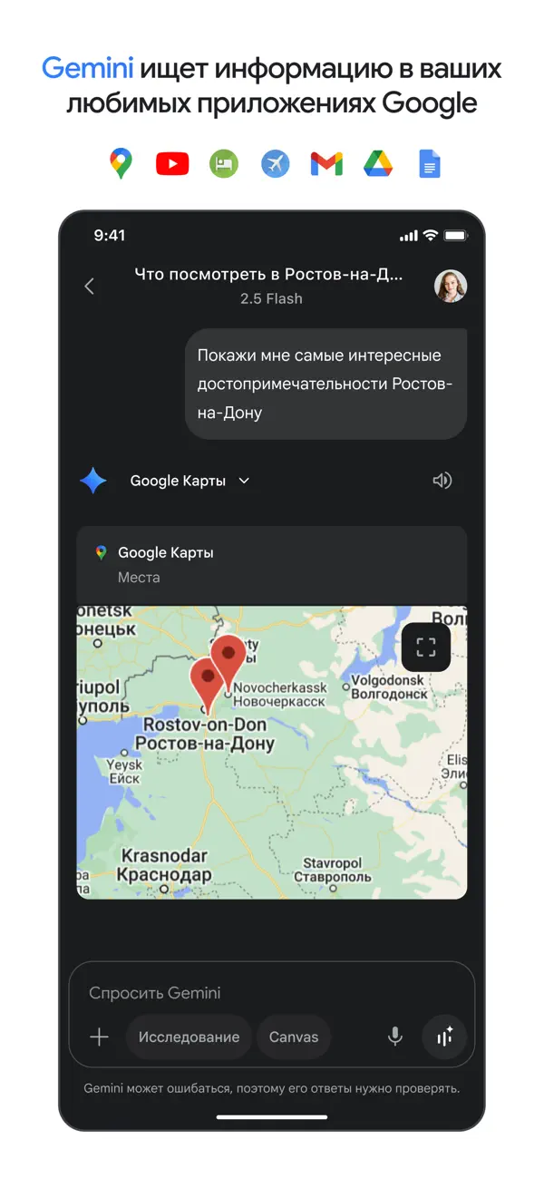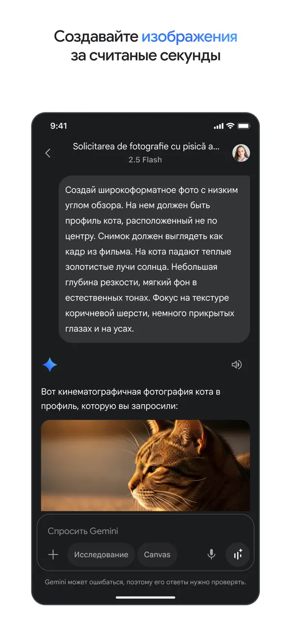 Приложение использует самые передовые модели искусственного интеллекта от Google, обеспечивая быстрые и точные ответы даже на сложные запросы.